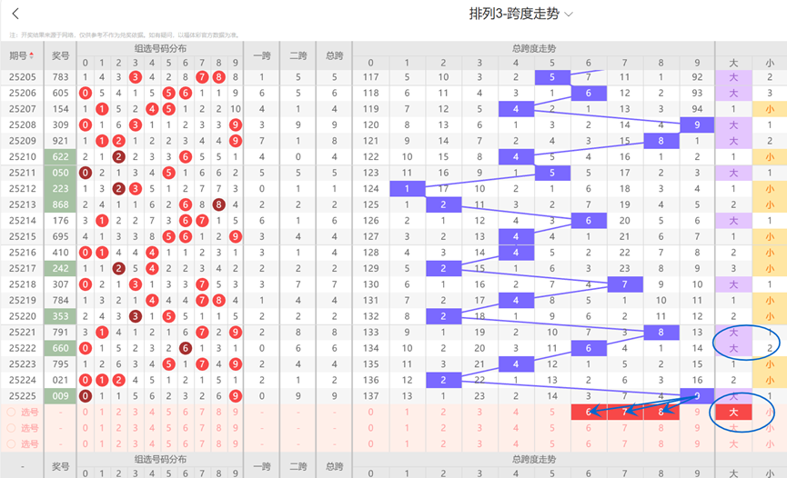 通过对历史数据中各期的跨度值进行分析,玩家可以发现在一定范围内,某些跨度值出现的频率较高,具有一定的规律性。跨度值分析的核心思想就是寻找这种规律,从而为下一期的选号提供科学依据。